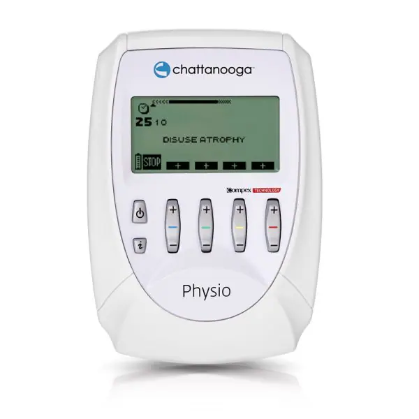 Chattanooga Physio je kompletan 4-kanalni stimulator razvijen za upravljanje svim indikacijama elektroterapije: standardna (TENS/NMES), potpuna (neurologija, ACL) i denervirane mišiće, hiperidroza, urologija ili prevencija edema.